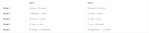 Anm: datoerne er foreløbige og kan blive ændret hvis Energistyrelsen vurderer det nødvendigt